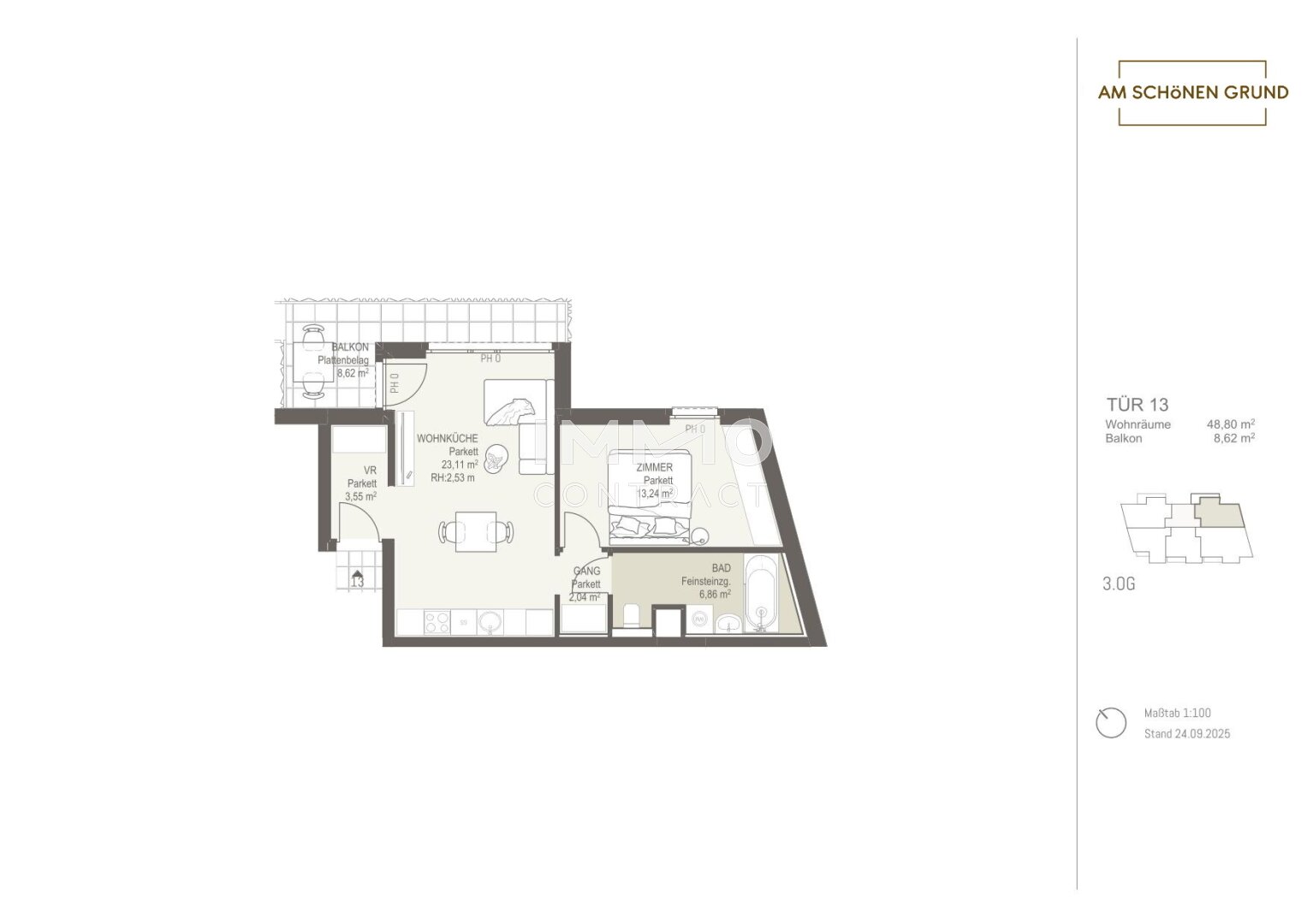 Mit dem Projekt „Am schönen Grund“ entsteht ein exklusives Wohnensemble aus 30 stilvollen Eigentumswohnungen, das urbanes Lebensgefühl mit naturnaher Wohnqualität vereint. Die Auswahl reicht von kompakten Garçonnièren für Singles oder Kapitalanleger bis hin zu großzügigen 4-Zimmer-Familienwohnungen – für jedes Bedürfnis die passende Lösung.