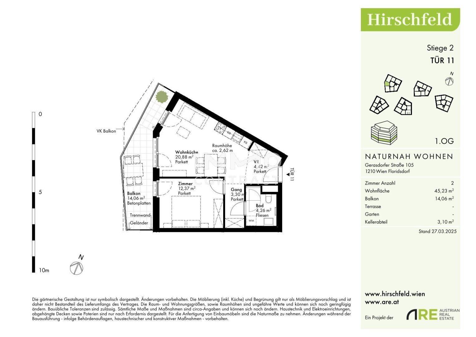 Am Rande eines weitläufigen Grünzugs, der sich bis zum Bisamberg erstreckt, entsteht im naturnahen Hirschfeld ein einzigartiges Wohnquartier: Auf drei Bauplätzen entwickelt sich ein modernes Architektur-Ensemble mit elf Gebäuden und rund 440 Wohnungen – ideal für alle, die Ruhe im