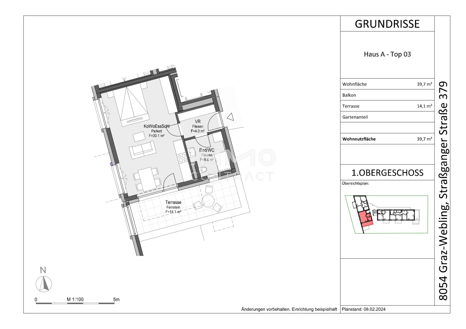 Diese ca. 39,70 m² große SINGLE-Wohnung befindet sich im 1.OG des Hauses Straßganger Straße 379a in einer modernen, kleinen, neuwertigen Wohnanlage.