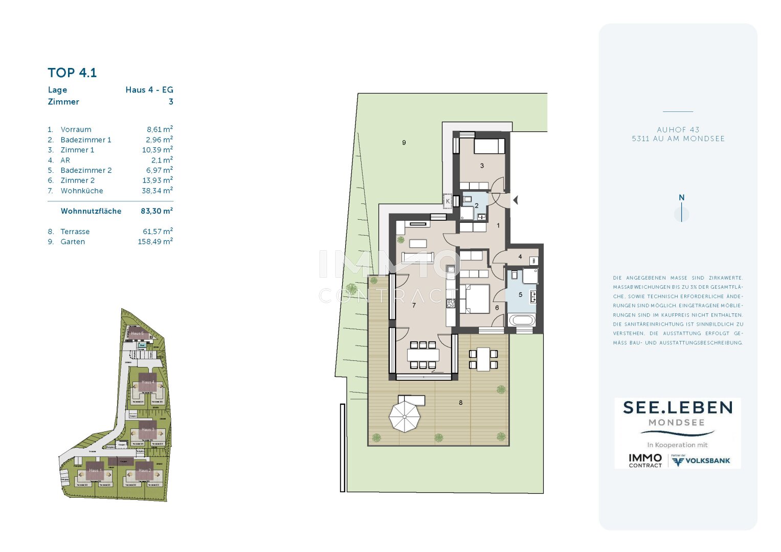 Fünf moderne Häuser mit insgesamt 12 Eigentumswohnungen und einer luxuriösen Villa schaffen ein außergewöhnliches Wohnambiente in traumhafter Lage. Dank der leichten Hanglage genießen alle Einheiten einen einzigartigen Ausblick auf den Mondsee und das Bergpanorama.