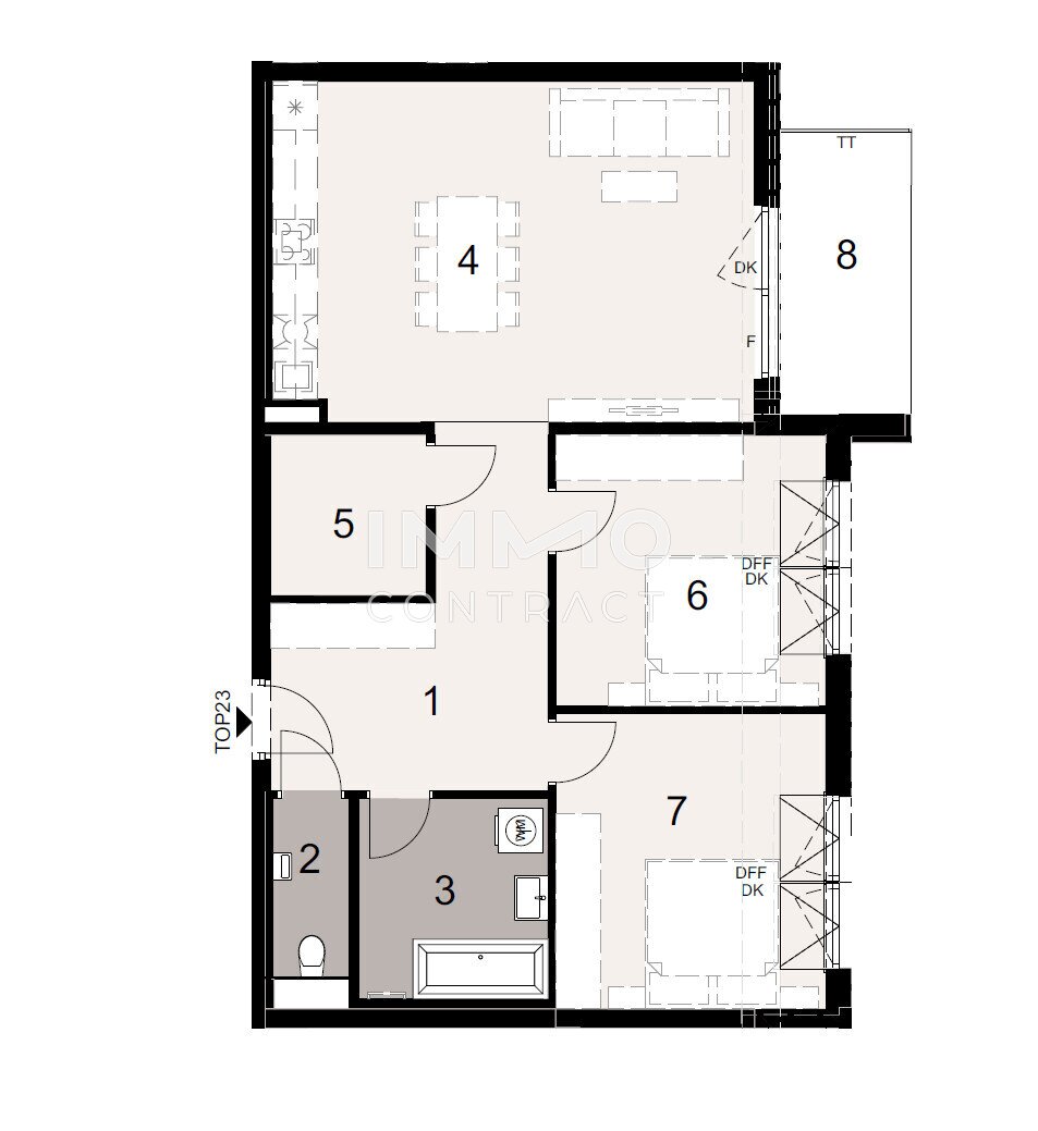 Hier entsteht ein Ort zum Ankommen und Wohlfühlen. Das großzügige Wohnzimmer mit offener Küche lädt zum gemeinsamen Kochen, Lachen und Leben ein – der perfekte Mittelpunkt für Familie und Freunde. Zwei gemütliche Schlafzimmer bieten Rückzugsorte zum Träumen, während das Bad – ganz