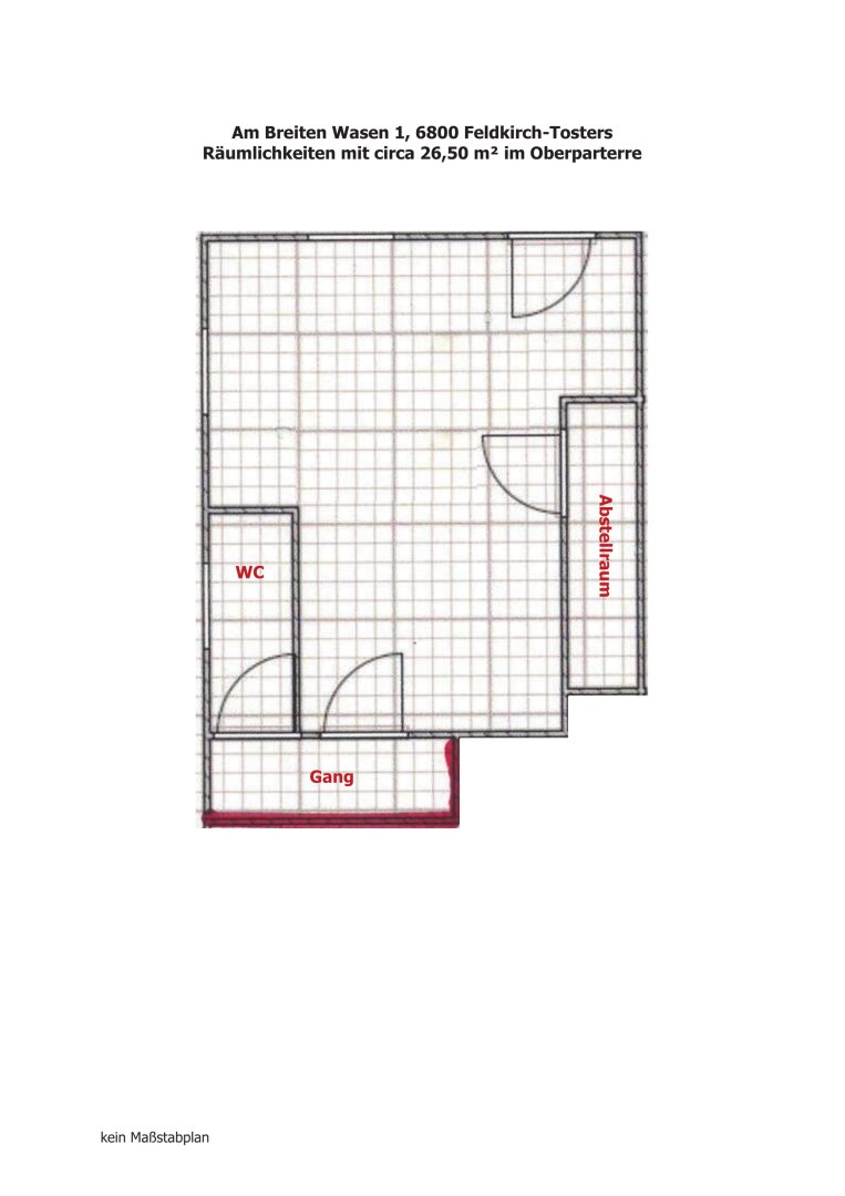 Am Breiten Wasen 1 in Feldkirch, im beliebten Stadtteil Tosters, erwartet Sie diese vielseitig nutzbare Geschäftsfläche mit rund 26,50 m², die ideale Voraussetzungen für kleine Unternehmen und Selbstständige bietet. Ob Büro, Praxis, Studio oder Dienstleistungsbetrieb – hier finden