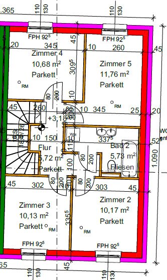 im Obergeschoß aus: Vorraum, 4 Zimmer, Badezimmer mit WC