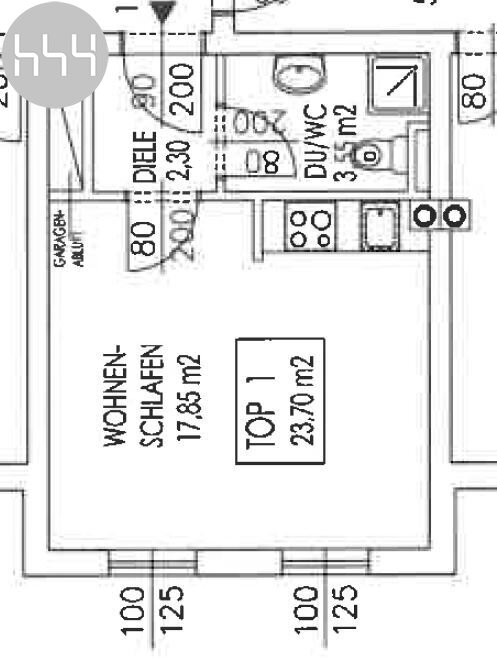 Die Wohnung hat eine Wohnfläche von ca. 23,70 m² bestehend aus dem Eingangsbereich, dem Wohn/Schlafraum mit integrierter Küche sowie einem Badezimmer.