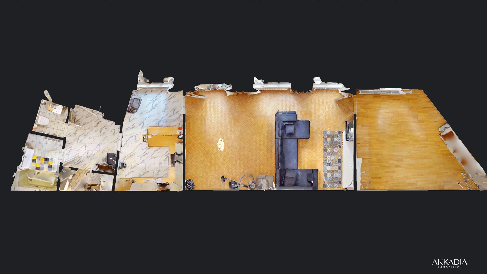 Diese helle Wohnung im 1. Stock überzeugt durch eine durchdachte Raumaufteilung und ihre ruhige Lage. Vom Vorraum aus erreichen Sie das Badezimmer mit Badewanne und Dusch-WC, ein separates WC, einen praktischen Abstellraum sowie die Küche.