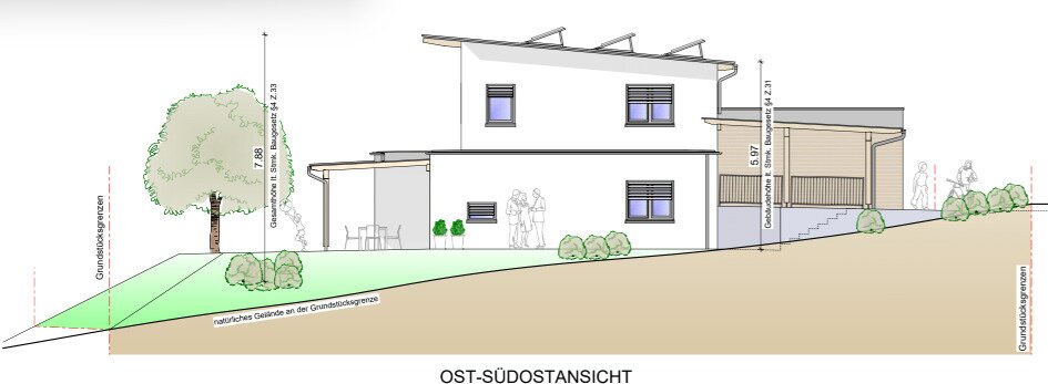 Verkauft wird es inkl. Baugenehmigung für ein Einfamilienhaus im Ausmaß von 111 m² Wohnnutzfläche zzgl. Doppelcarport.