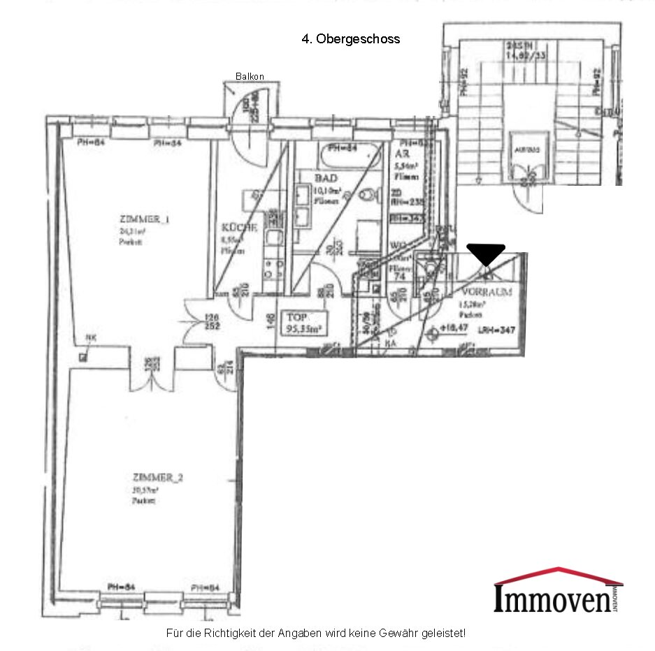 Die 2-Zimmerwohnung befindet sich im 4. Obergeschoss (mit Lift) und bietet eine Wohnfläche von ca. 95 m².