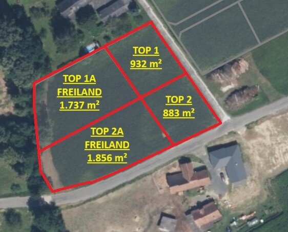 * 1x 883m² Baugrundstücke mit angrenzendem 1.856m² Freiland (bereits 2 Parzellen vorhanden)