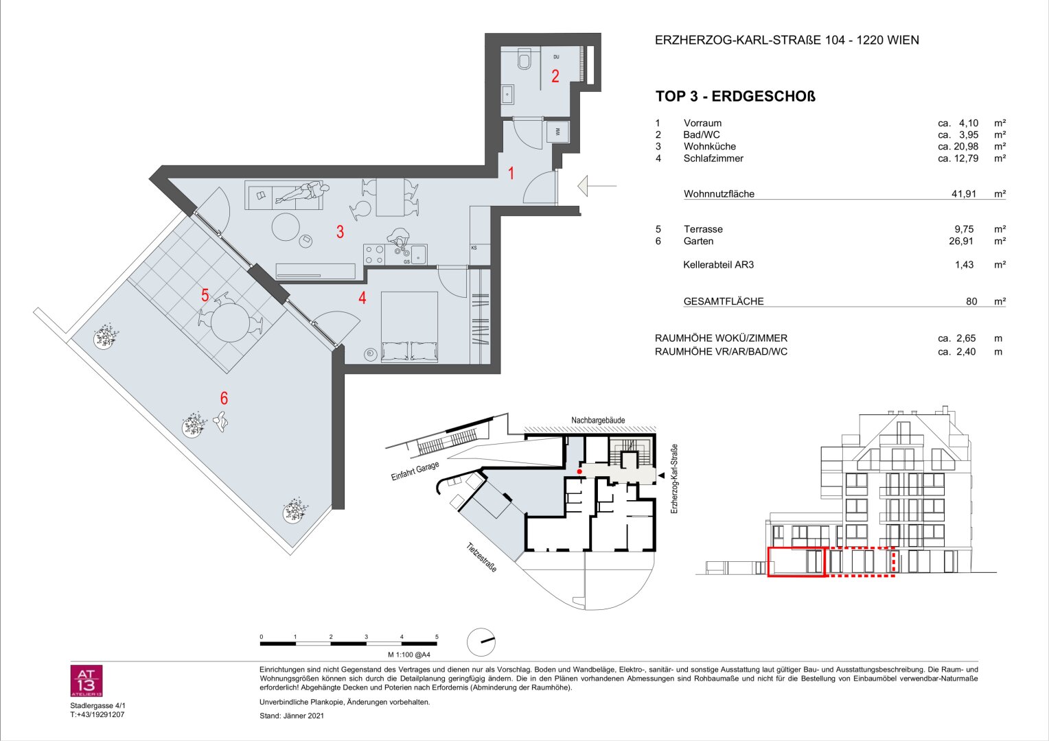 In begehrter Lage des 22.Bezirks – unweit der Alten Donau/Gänsehäufl sowie dem Bahnhof Erzherzog-Karl-Straße – gelangt diese 2 Zimmer-Wohnung mit ca. 42qm Wohnfläche zzgl. ca. 10qm Terrassenfläche und ca. 27qm Gartenfläche in einem 2022 fertiggestellten Neubau zum Verkauf. Weiters steht ein Stellplatz in der hauseigenen Tiefgarage zur Verfügung.