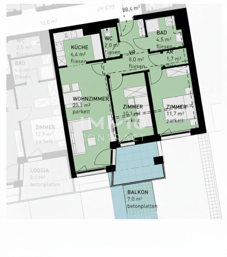 Balkon/Terrassen - Fläche: 7