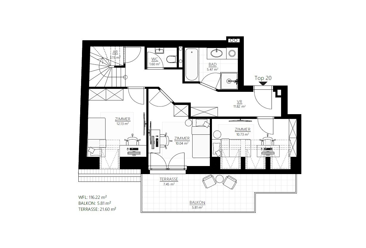 Balkon/Terrassen - Fläche: 27