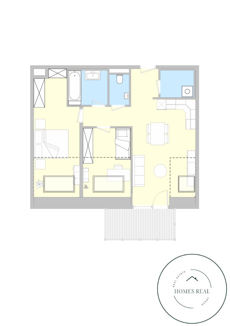 Schon beim Eintreten spürt man die Leichtigkeit dieses Wohnkonzepts: Großzügige Fensterflächen lassen viel Tageslicht herein und schaffen eine helle, angenehme Atmosphäre. Der durchdachte Grundriss verbindet Wohnkomfort mit moderner Klarheit – ergänzt durch einen rund 8 m² großen Balkon, der den Wohnraum ins Freie erweitert. Ein Zuhause, das Ruhe, Stil und