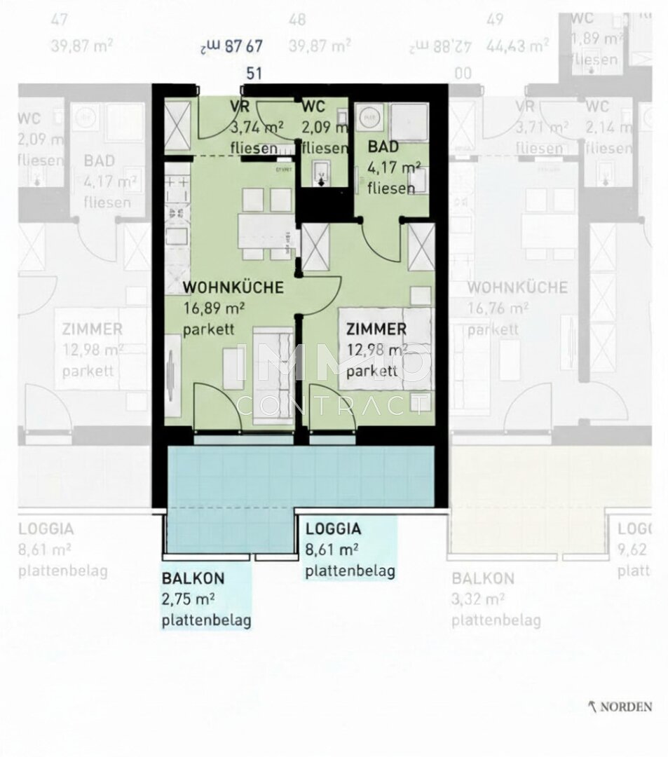 Im lebendigen Wiener Bezirk Simmering entsteht ein zeitgemäßes Wohnbauprojekt mit 82 freifinanzierten Eigentumswohnungen — provisionsfrei für Käufer. Das fünfgeschossige Gebäude bietet durchdachte 2‑ und 3‑Zimmer‑Einheiten mit Wohnflächen von ca. 39 bis 62 m². Jede Wohnung verfügt über eine private Freifläche (Loggia,