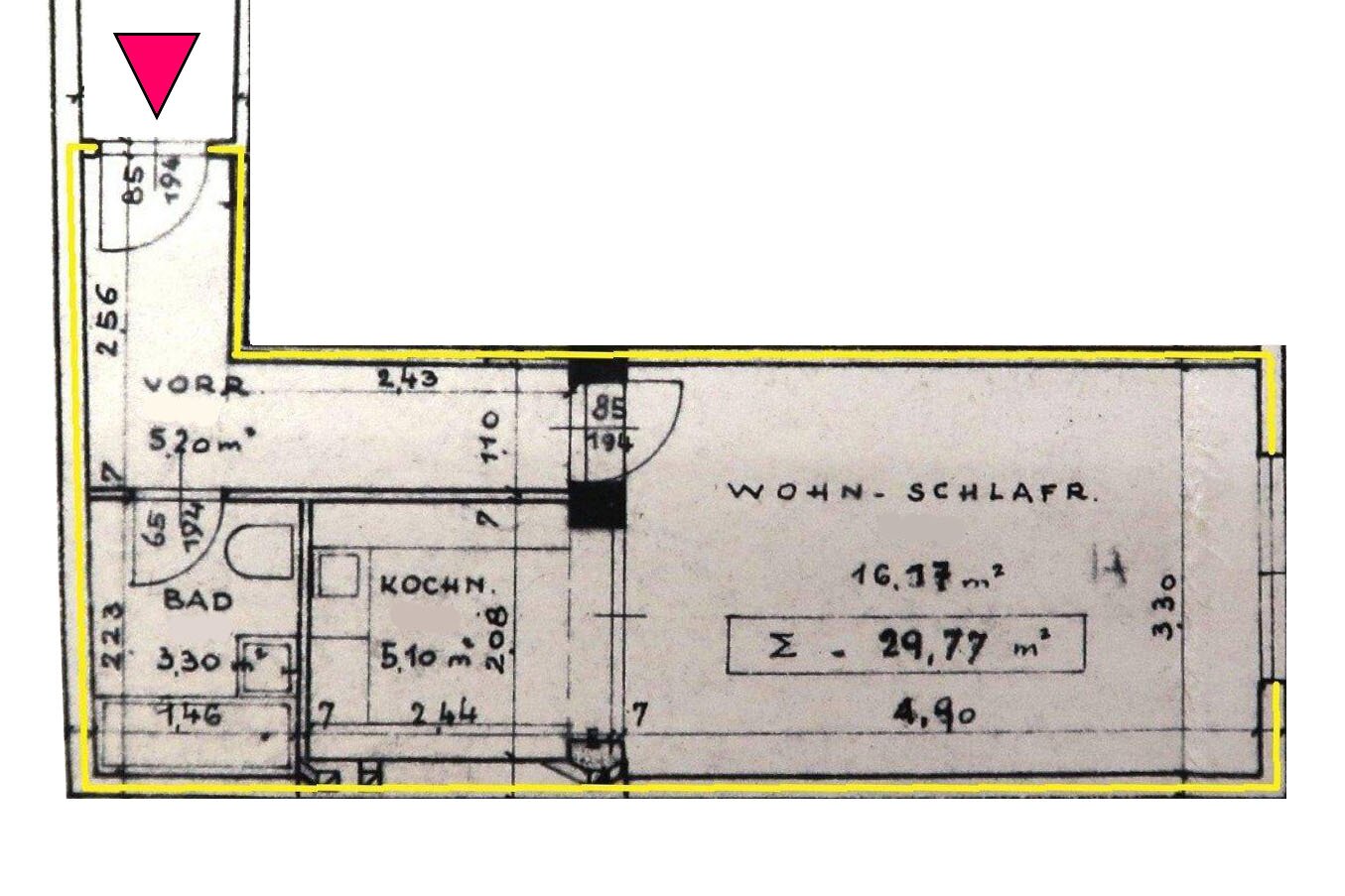 Helle 2 Zimmerwohnung im Erdgeschoß mit 17m²...