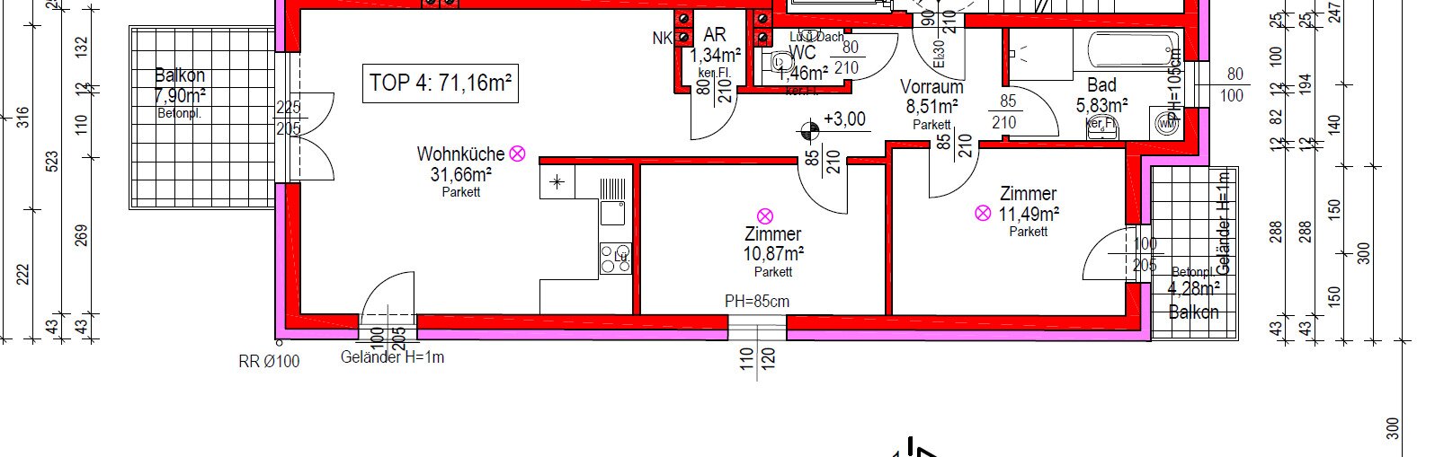 * 3 Zimmer, WC, Bad, Vorraum, Abstellraum
