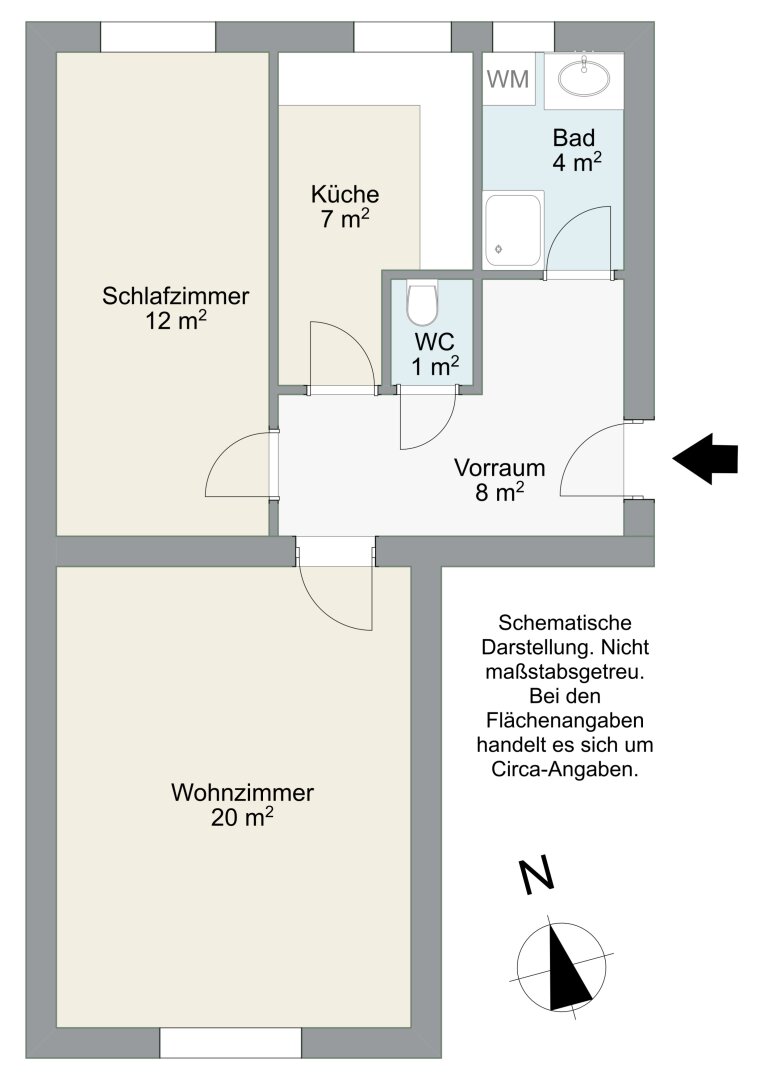 Helle, ruhige 2-Zimmer Wohnung mit separater Küche, zentral begehbar, wurde soeben komplett saniert