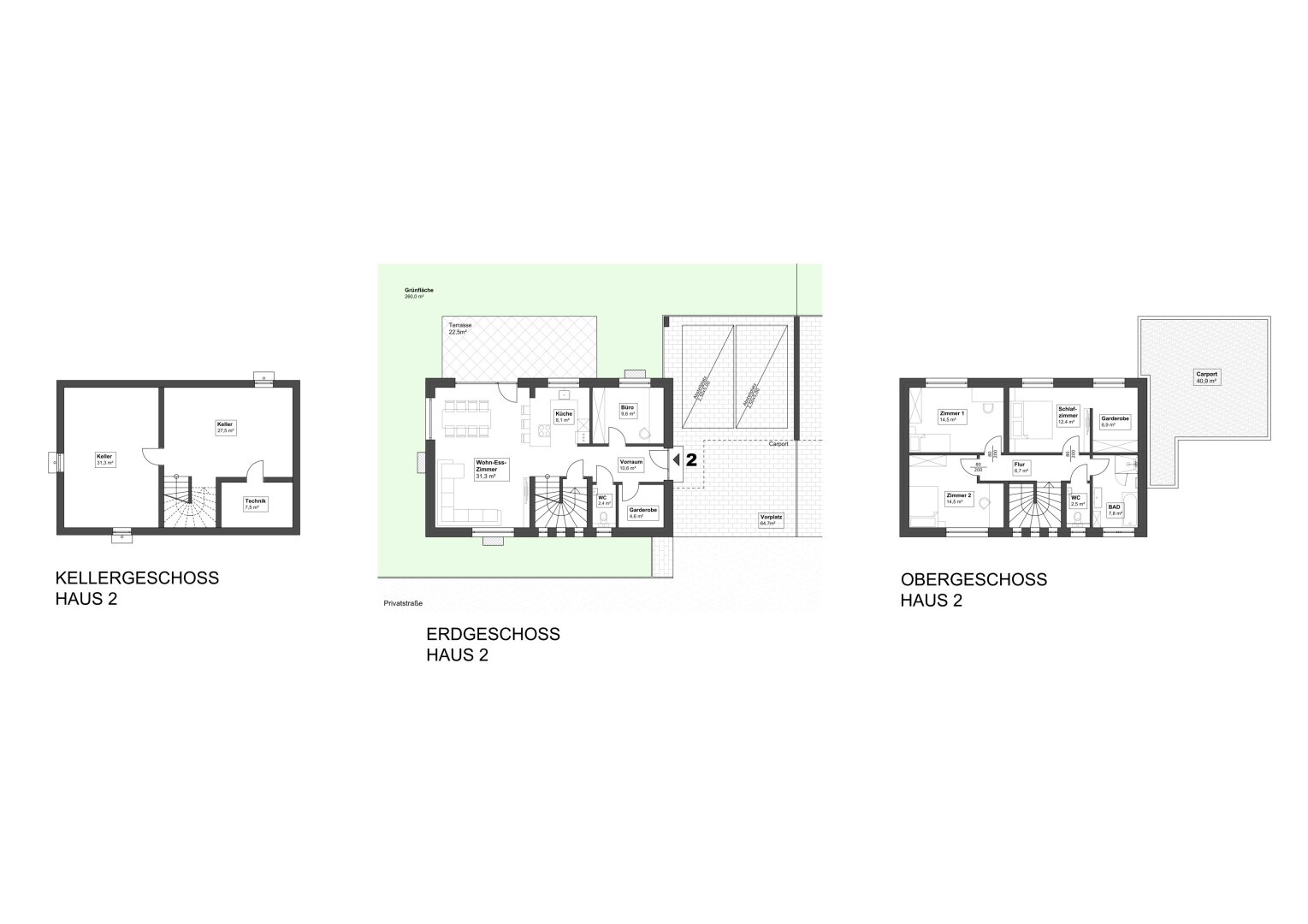 Auf einer Grundstücksgröße von ca. 2069,00m² entstehen vier Einfamilienhäuser mit einer Wohnnutzfläche von jeweils ca. 198,00m². Die angebotenen Wohneinheiten sind über eine eigene Zufahrtsstraße erreichbar und liegen als Fahnenparzelle geschützt von der Hauptstraße abgewandt.