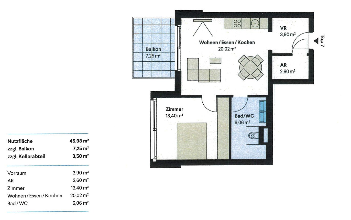 Balkon/Terrassen - Fläche: 7