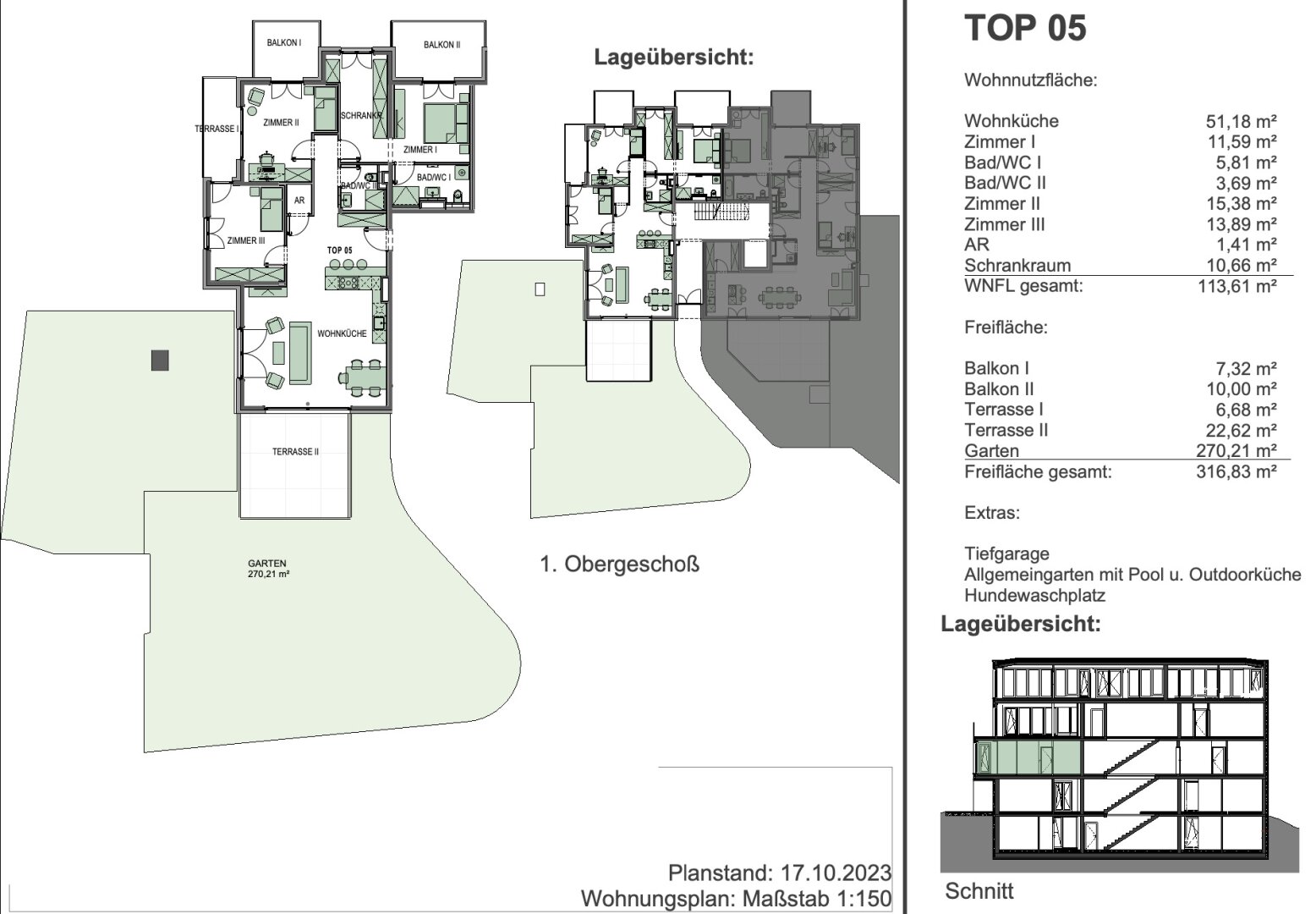 Diese hochwertig geplante Wohnung (TOP 05) befindet sich im Erdgeschoß und beeindruckt mit einer großzügigen Wohnnutzfläche von 113,61 m² sowie weitläufigen Freiflächen. Die Wohnküche mit 51,18 m² bildet das Herzstück der Wohnung und bietet durch die optimal geplante Raumaufteilung viel Platz zum Wohnen, Essen und Entspannen. Die angrenzende Terrasse sowie