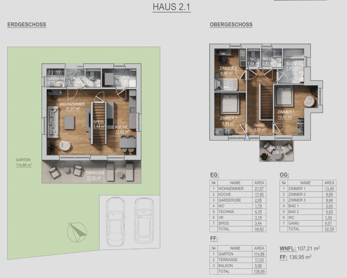 Im Erdgeschoss befindet sich ein heller, zentraler Wohnbereich mit direktem Zugang zur Terrasse und in den Garten. Die offene Küche ist harmonisch in den Wohnraum integriert. Zusätzlich gibt es einen Vorraum, eine Garderobe, ein