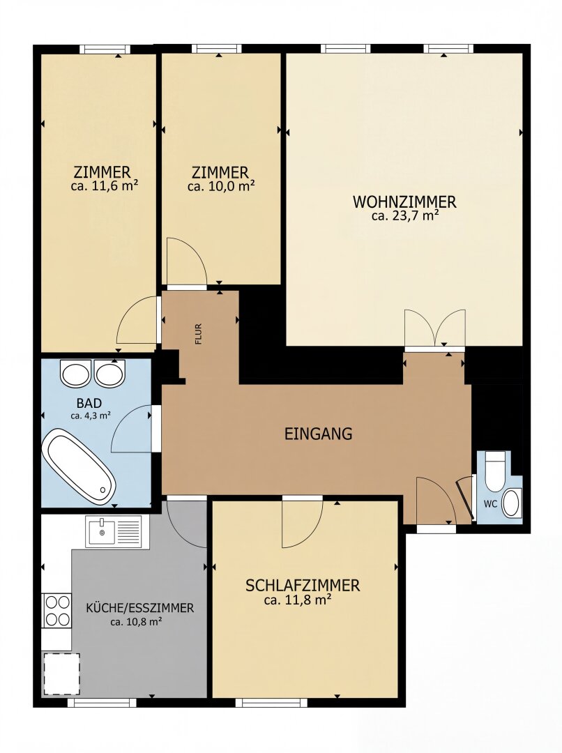 4 Zimmer Altbauwohnung mit praktischem Grundriss – 87 m² Wohnfläche