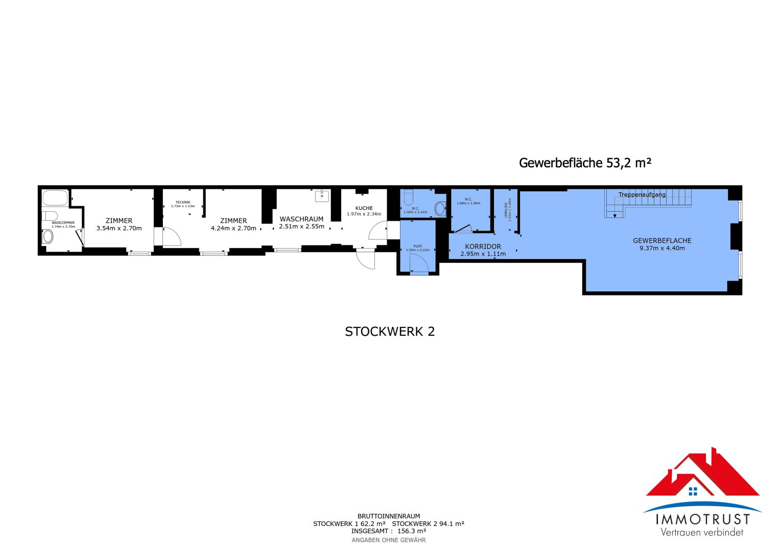 Der Zugang erfolgt wahlweise durch den Friseursalon oder über ein separates Stiegenhaus, was sowohl Diskretion als auch Sichtbarkeit ermöglicht – ideal für innen im Beauty- und Gesundheitsbereich oder für