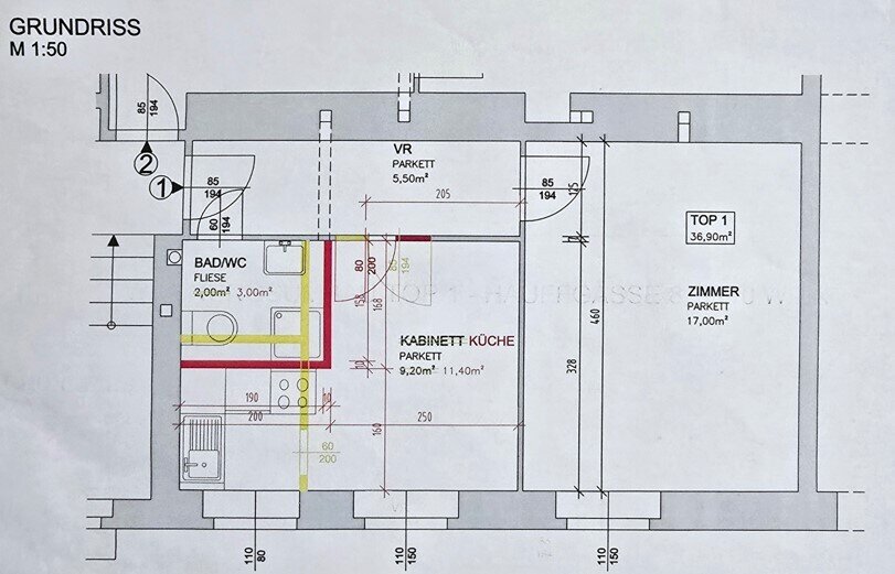 – einem Badezimmer mit einer Dusche, einem WC und einem Waschmaschinenanschluss