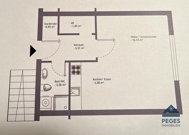 _Die Wohnung_ liegt im 1. Obergeschoss des Hauses (ohne Lift) und verfügt über eine Wohnfläche von 28,80 m². Die helle Wohnung befindet sich in einem ordentlichen und gepflegten Zustand