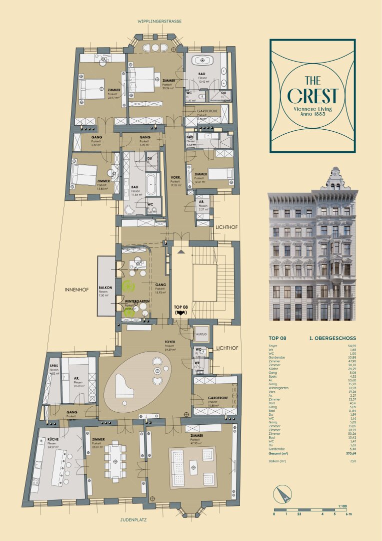 Diese exklusive Wohnung mit ca. 370 m² Wohnfläche und 8 Zimmern befindet sich in einem prachtvollen, denkmalgeschützten Gebäude und verbindet den Charme historischer Architektur mit modernem Wohnkomfort. Im Herzen des 1. Wiener Bezirks erwartet Sie ein stilvolles Apartment mit großzügiger Raumhöhe (ca. 3,5 m), durchdachtem Grundriss und hochwertigen Ausstattungsdetails –