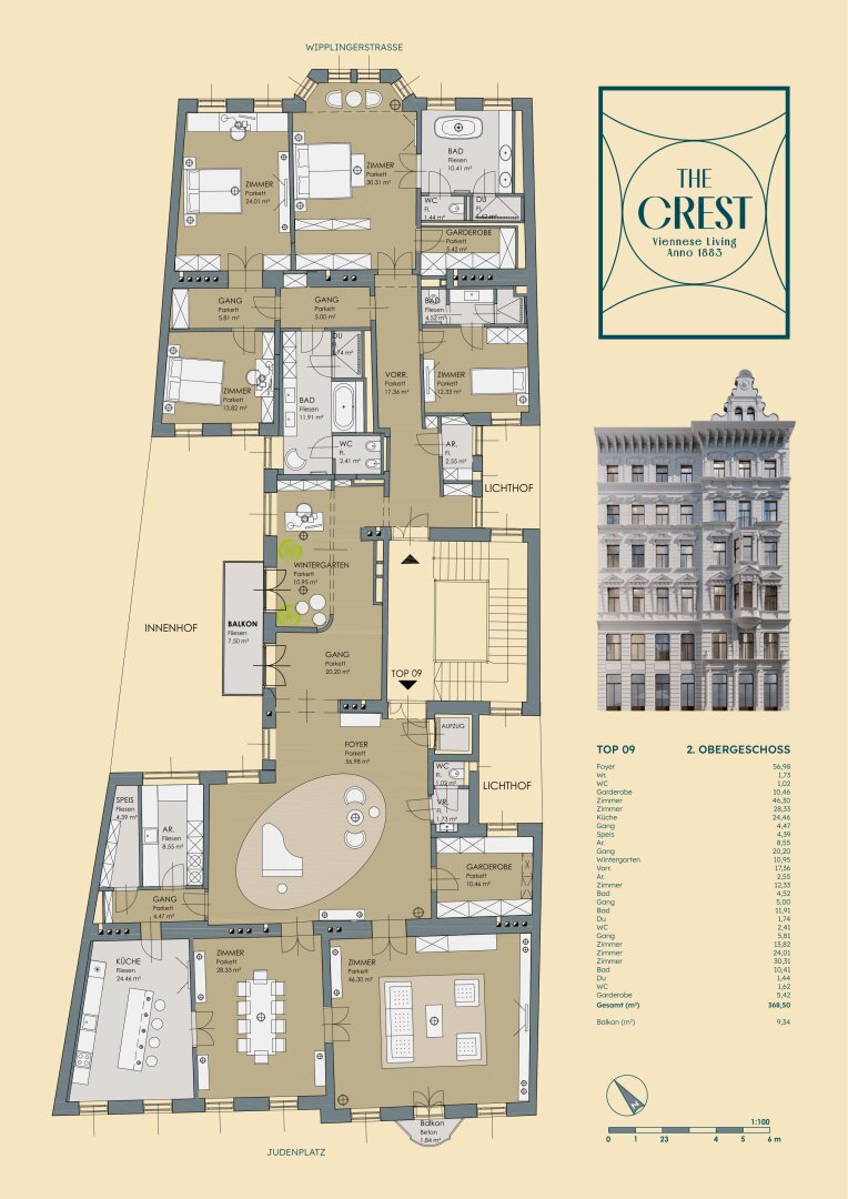 Diese exklusive Wohnung mit ca. 370 m² Wohnfläche und 8 Zimmern befindet sich in einem prachtvollen, denkmalgeschützten Gebäude und verbindet den Charme historischer Architektur mit modernem Wohnkomfort. Im Herzen des 1. Wiener Bezirks erwartet Sie ein stilvolles Apartment mit großzügiger Raumhöhe (ca. 3,5 m), durchdachtem Grundriss und hochwertiger Ausstattung –