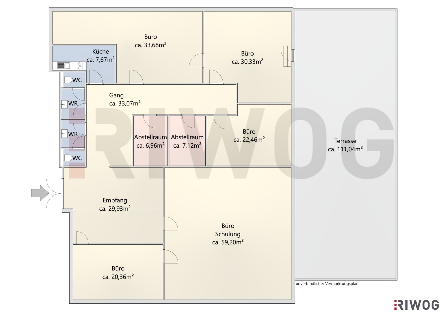 268m² Büro mit 111m² Terrasse zur alleinigen Nutzung | Klima | Parkplätze | auf bis zu 668m² erweiterbar | optionales EG-Lager mit 47m²