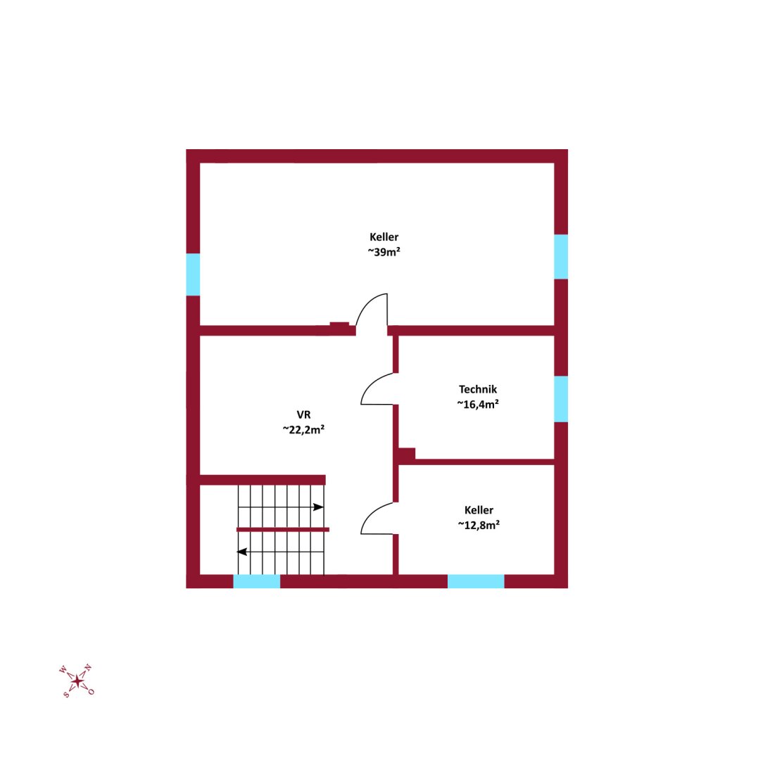 Das Erdgeschoss verfügt über eine Wohnfläche von ca. 84 m², ein Badezimmer, ein