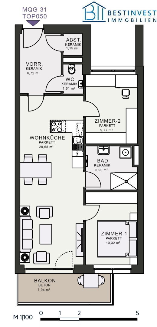 Kofferpacken und ab sofort einziehen – Top ausgestatteter Erstbezug, zentral gelegen. NEUBAU Messquadrat in der Fröhlichgasse.
