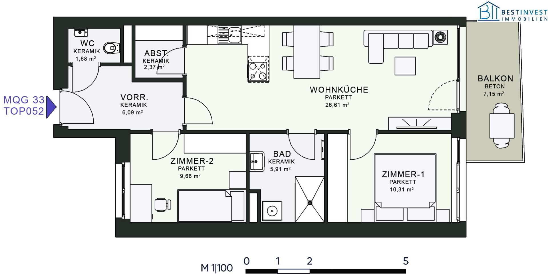 Kofferpacken und ab sofort einziehen – Top ausgestatteter Erstbezug, zentral gelegen – NEUBAU Messequadrant in der Fröhlichgasse 33.