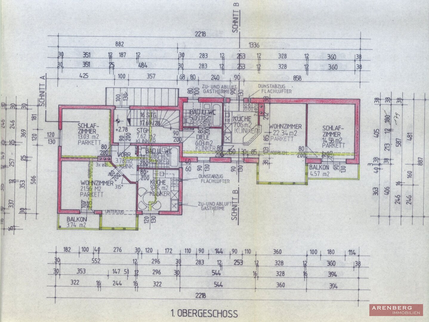 Erdgeschoss: Top 1  52,34 m² und Top 2  53,76 m²