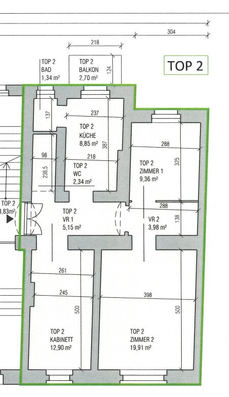 Die Wohnung verfügt über 63,83 m² und teilt sich wie folgt auf: