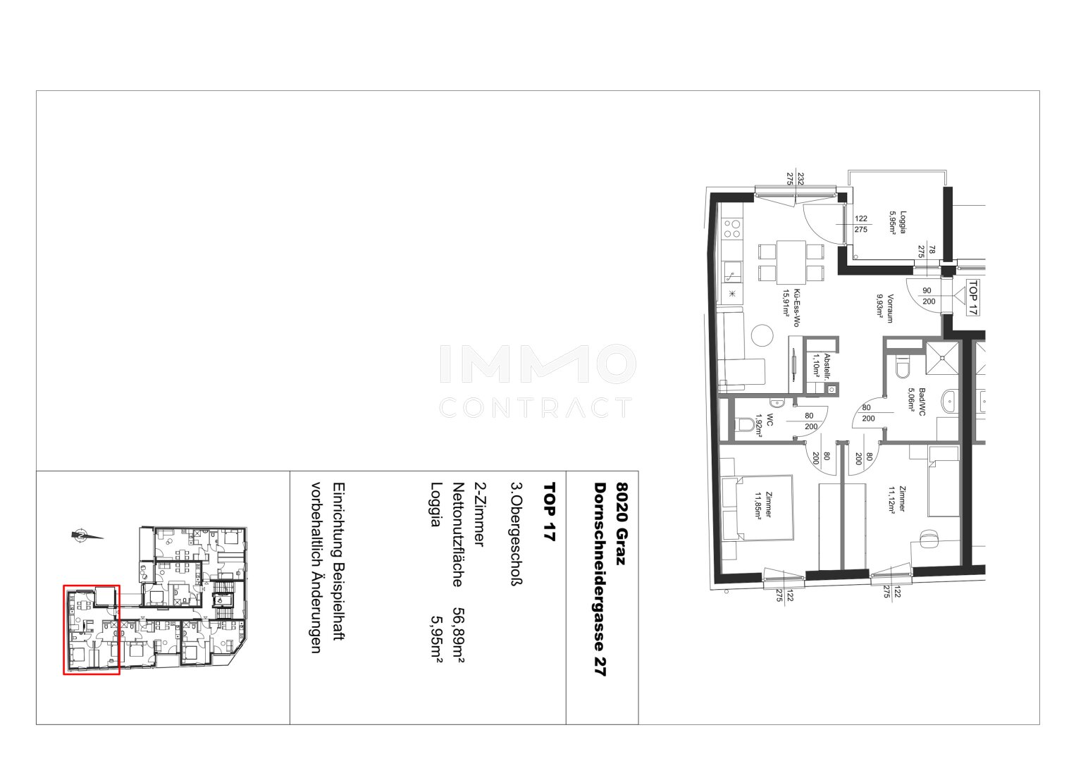 Diese ca. 56,89 m² große, geförderter Wohnung befindet sich im 3. Obergeschoß des Hauses Dornschneidergasse 27 in einem modernen, neuwertigen Wohnhaus.