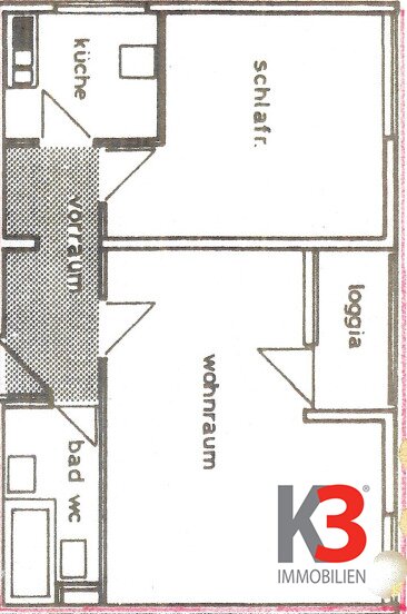 Diese Wohnung bestehend aus 2 Zimmern: 1 Wohnzimmer, 1 Schlafzimmer, 1 Küche, Bad mit WC ( neu renoviert), Flur, Loggia, und ein Autoabstellplatz.