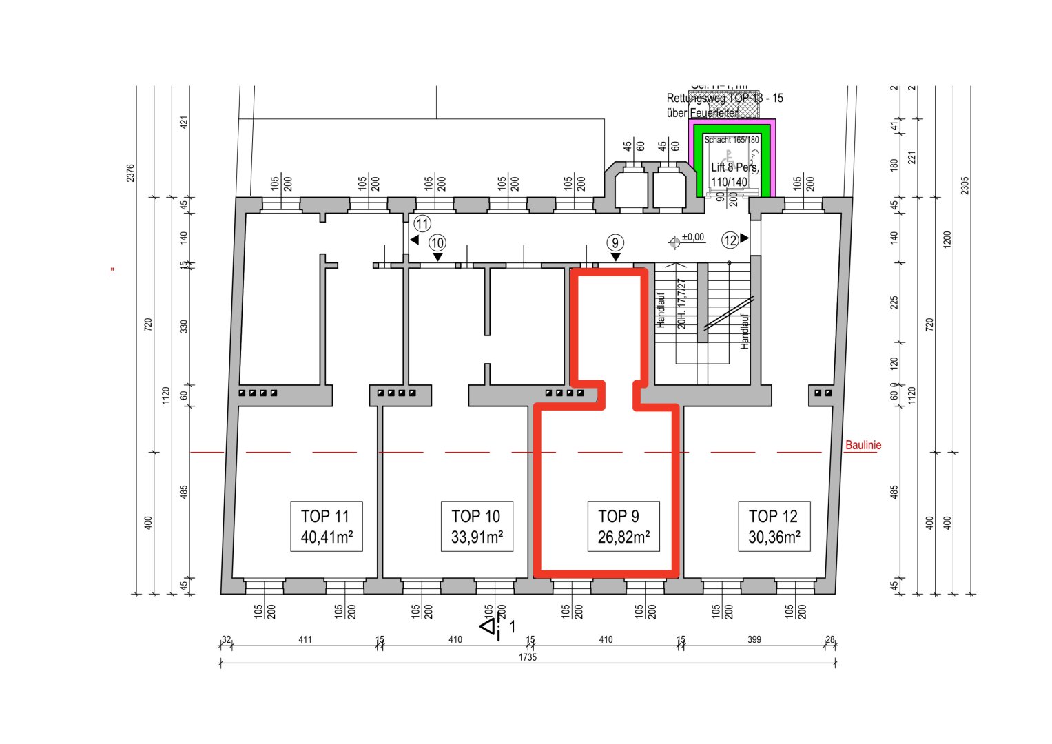 Die angebotene Wohnung hat 26,82 m² und besteht aus einem Zimmern und einem Vorraum mit Küchenanschlussmöglichkeit.