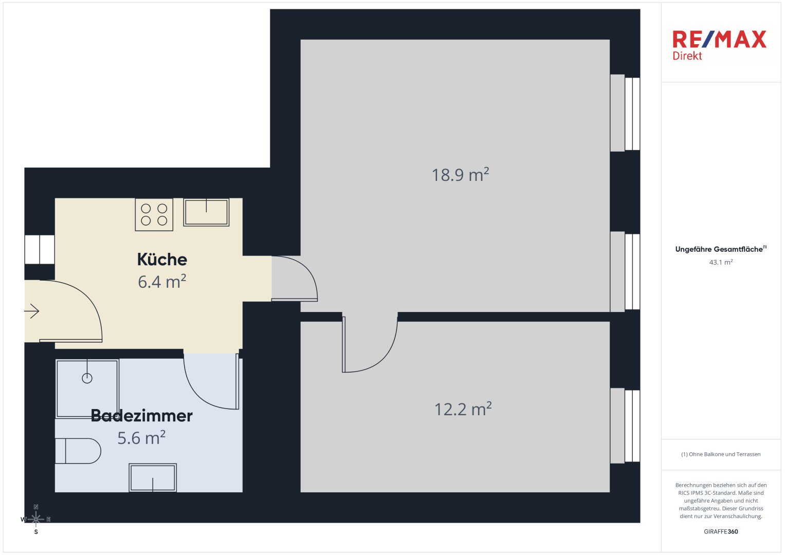 Gesamtfläche: 44 m2