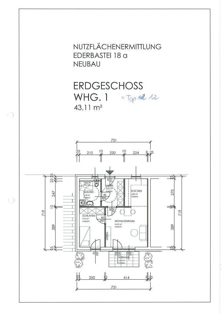 Die Wohnung befindet sich im Erdgeschoss mit Balkon und ist mit einem Lift zu erreichen. Sie besteht aus Vorzimmer, angrenzendem Bad/WC, sowie Wohnküche. Von der Wohnküche gelangt man in das Schlafzimmer.