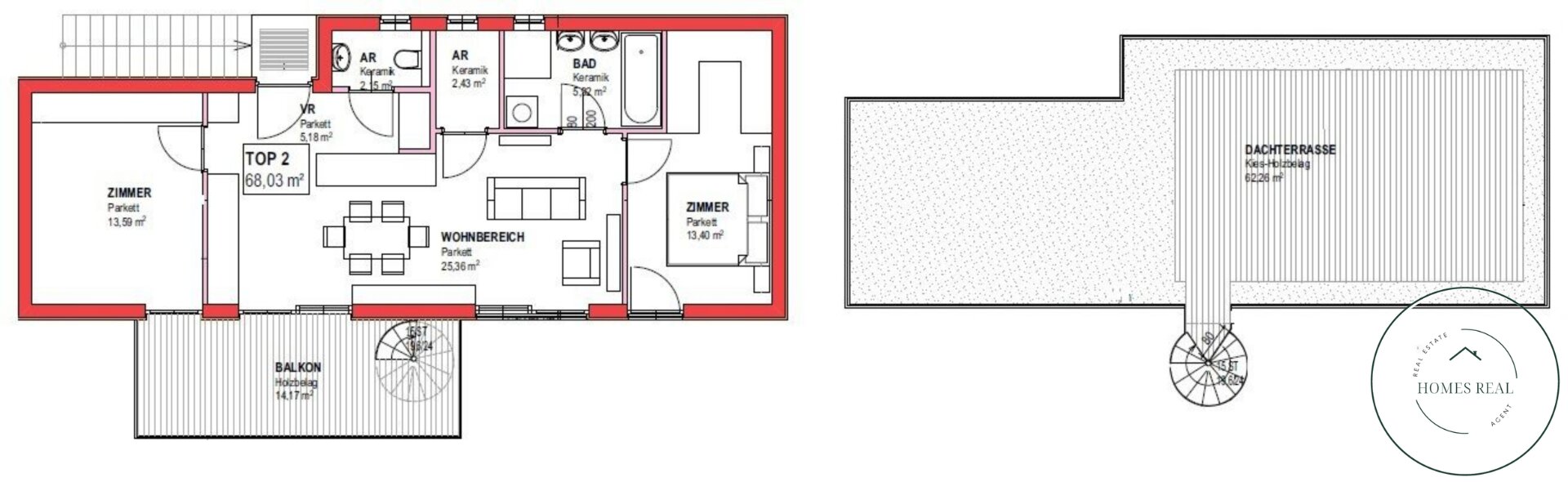 Oben ankommen, durchatmen und den Blick über die Dächer schweifen lassen – genau dieses Gefühl erwartet Sie hier. Diese Dachgeschosswohnung verbindet die Leichtigkeit modernen Wohnens mit einem seltenen Maß an Freiraum. Lichtdurchflutet, ruhig gelegen und mit gleich zwei großzügigen Außenflächen entsteht ein Wohngefühl, das sonst eher einem Haus vorbehalten ist.