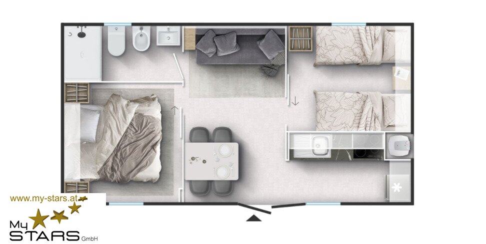 Zur Auswahl stehen verschiedene Mobilheim-Haus-Typen (bitte Detailunterlagen anfragen), z.B. das Modell: „M-Line