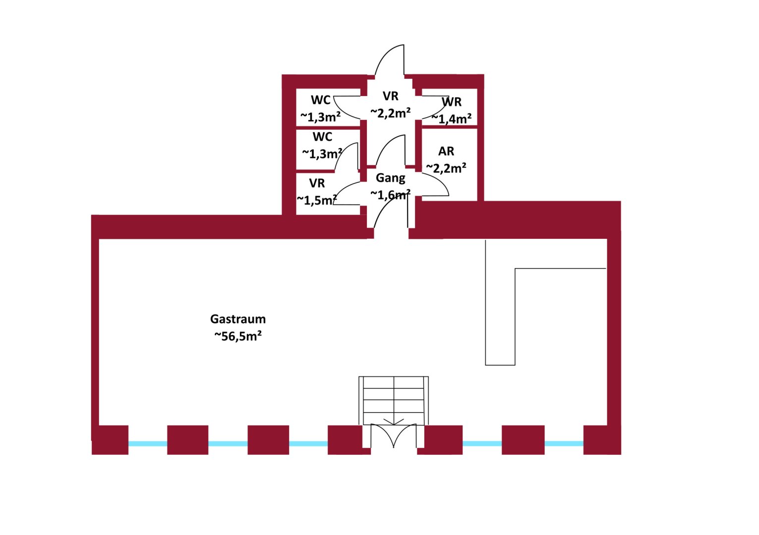 Das Geschäftslokal mit knapp 68,09 m² Wohnfläche gliedert sich in folgende, funktionelle Raumaufteilung: