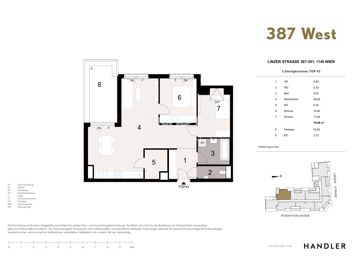 Diese exklusive Dachgeschosswohnung mit nur einer Dachschräge im modernen Neubauprojekt _387 WEST_ überzeugt durch ihre großzügige Raumaufteilung, lichtdurchflutete Wohnbereiche und eine beeindruckende Terrasse mit Blick in den ruhigen Innenhof.
