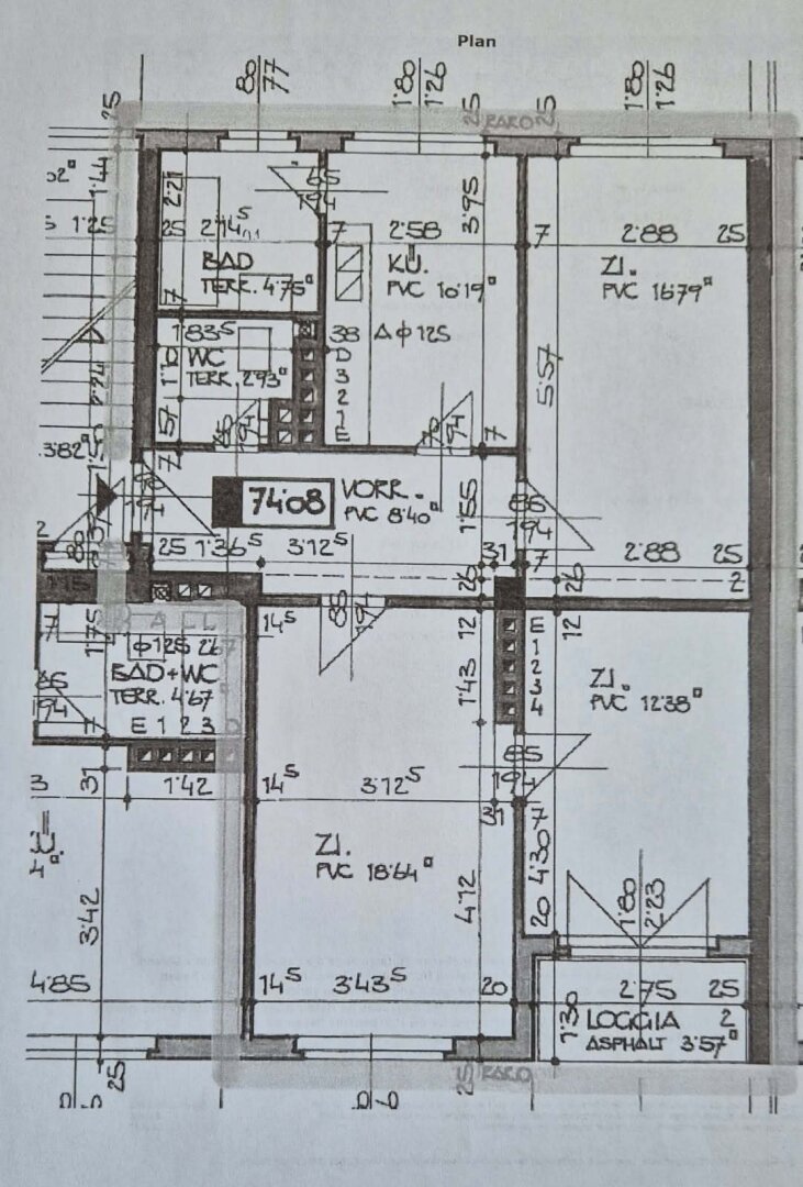 Raumaufteilung: Vorraum, 3 Zimmer, Küche, Loggia, Tageslichtbadezimmer, WC