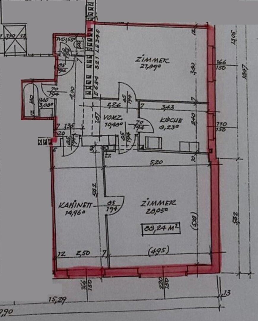 Zur Vermietung gelangt diese gut geschnittene und zentral begehbare teilmöblierte 3-Zimmer-Wohnung mit einer Wohnfläche von ca. 88,24 m², gelegen im 5. Liftstock eines gepflegten Neubauhauses!