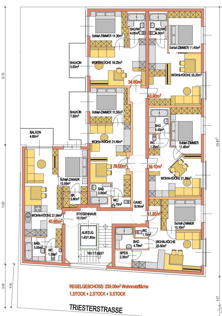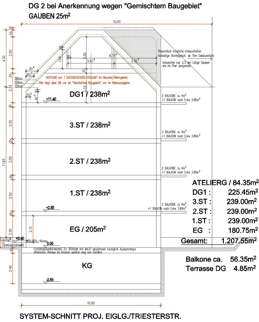 – Bebauungs-Studie vorhanden: erzielbare WFL 1.215 m²