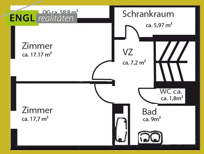 Im EG befindet sich eine geräumig Wohnküche mit Kachelofen. Ein großes WC, Abstellraum und Gartenbereich.