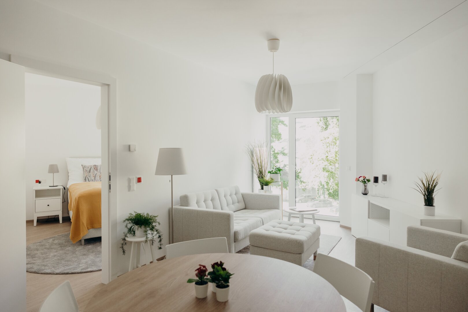 In der Parkresidenz Corvinus können Sie aus 6 unterschiedlichen Apartment-Typen wählen. Je nach Anforderungen und Vorstellungen finden Sie hier Ihren zukünftigen Wohn(t)raum. Neben den modernen Mietwohnungen mit Küche (Einrichtung auf Fotos ist beispielhaft und nicht Teil der Ausstattung) verfügt die barrierefreie Parkresidenz auch über eine hauseigene Terrasse und Garten im